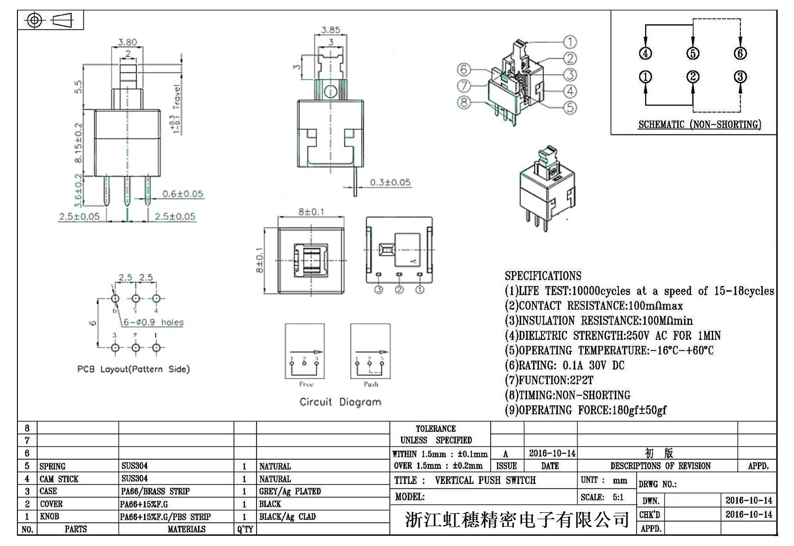 自鎖開關技術參數: