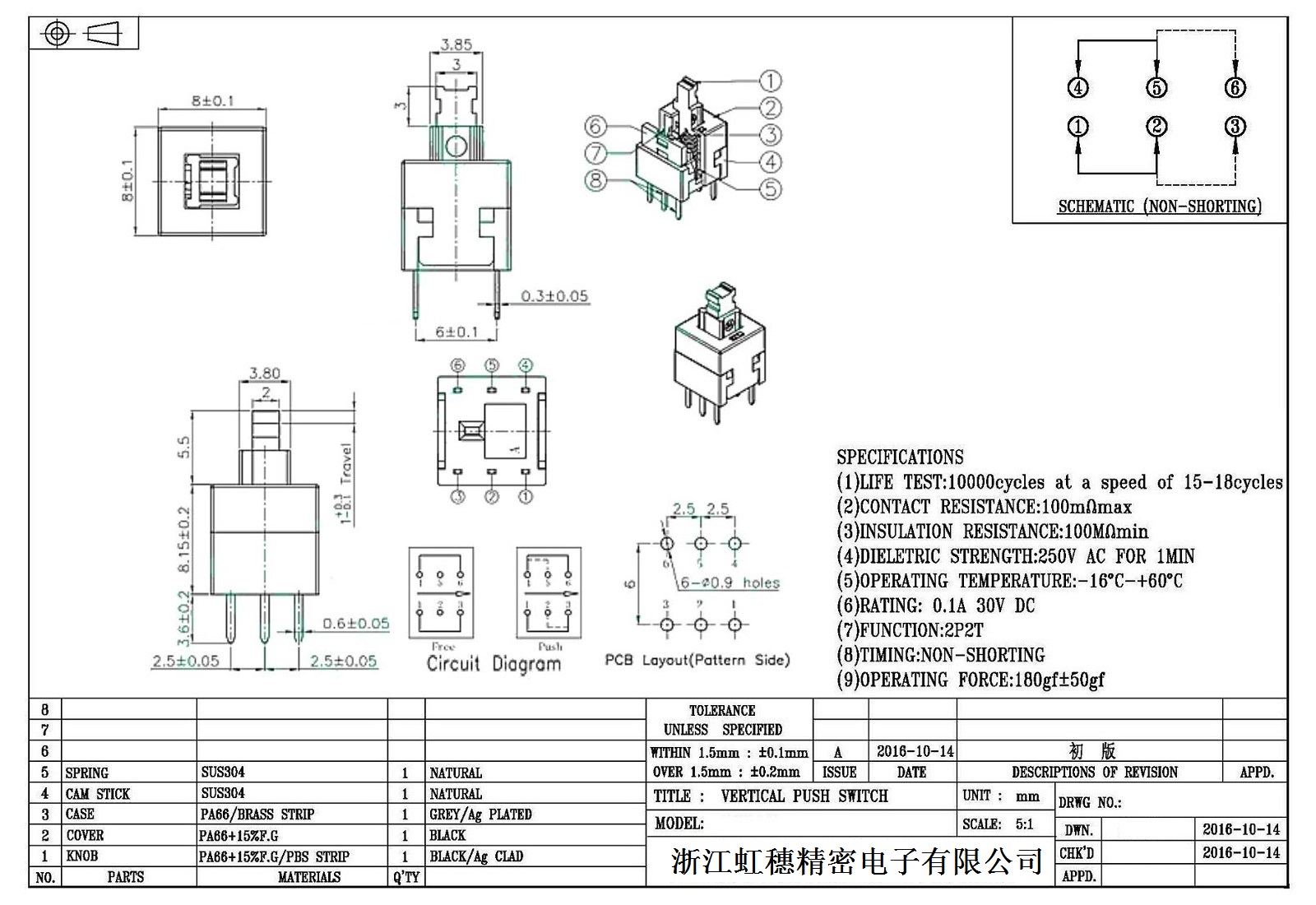 自鎖開關技術參數: