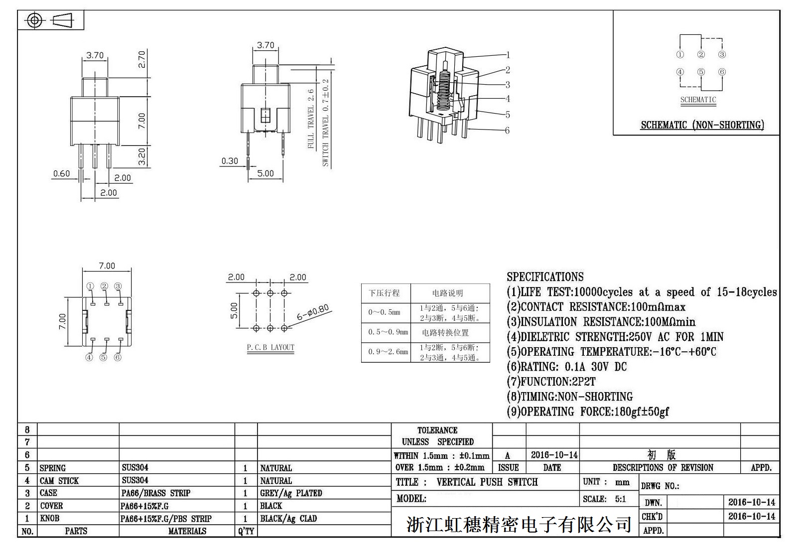 自鎖開關(guān)技術(shù)參數(shù):