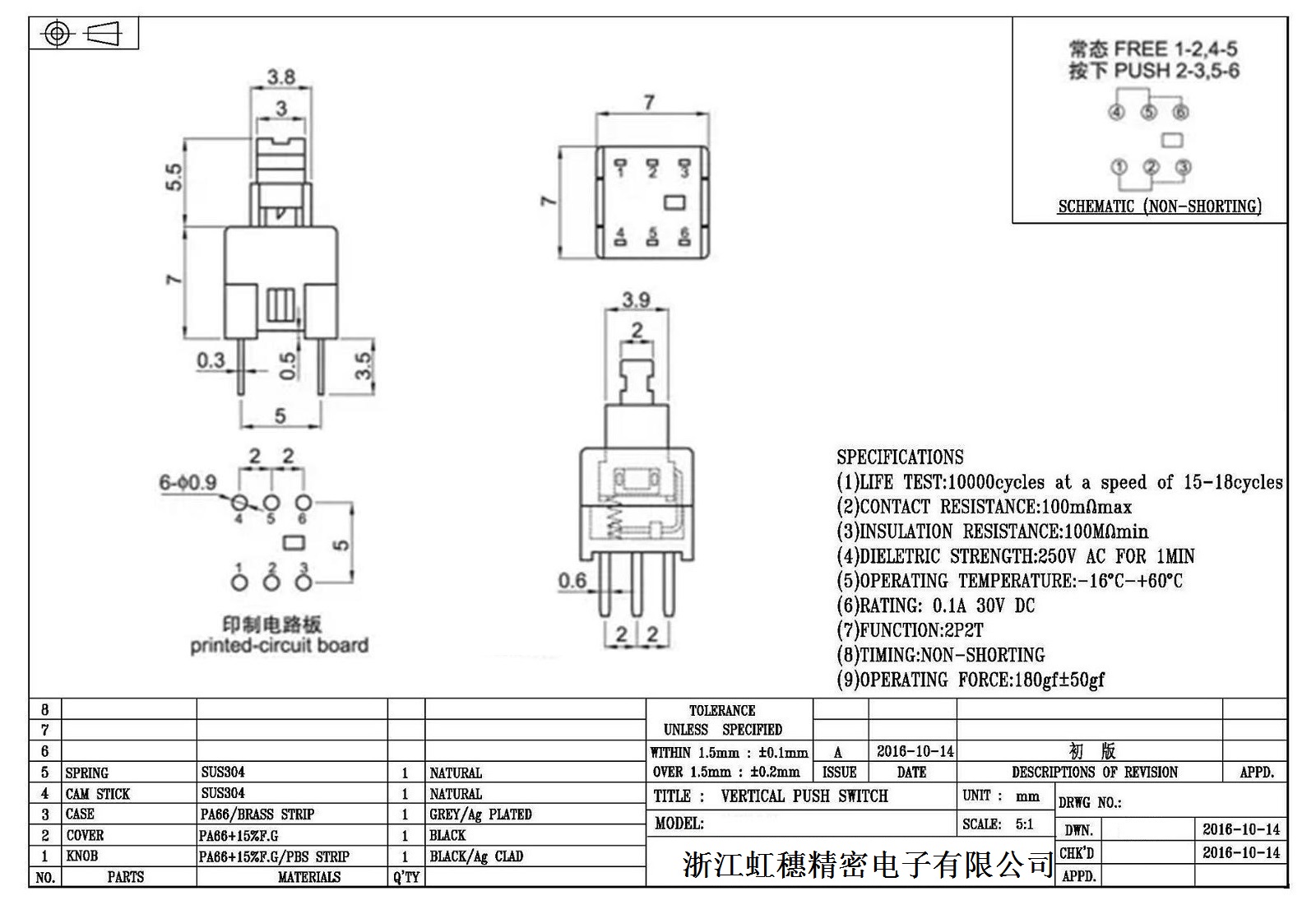 自鎖開關(guān)技術(shù)參數(shù):