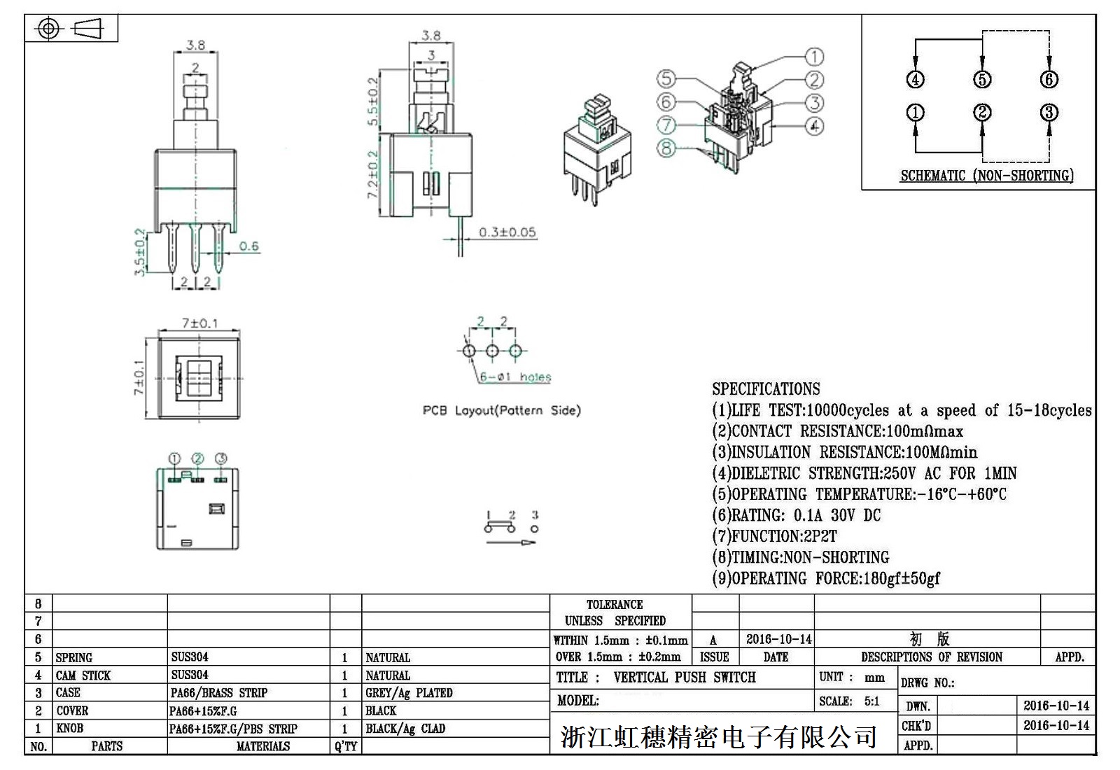 自鎖開關(guān)技術(shù)參數(shù):