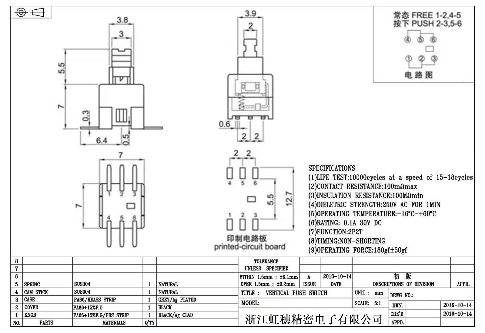 自鎖開關(guān)技術(shù)參數(shù):