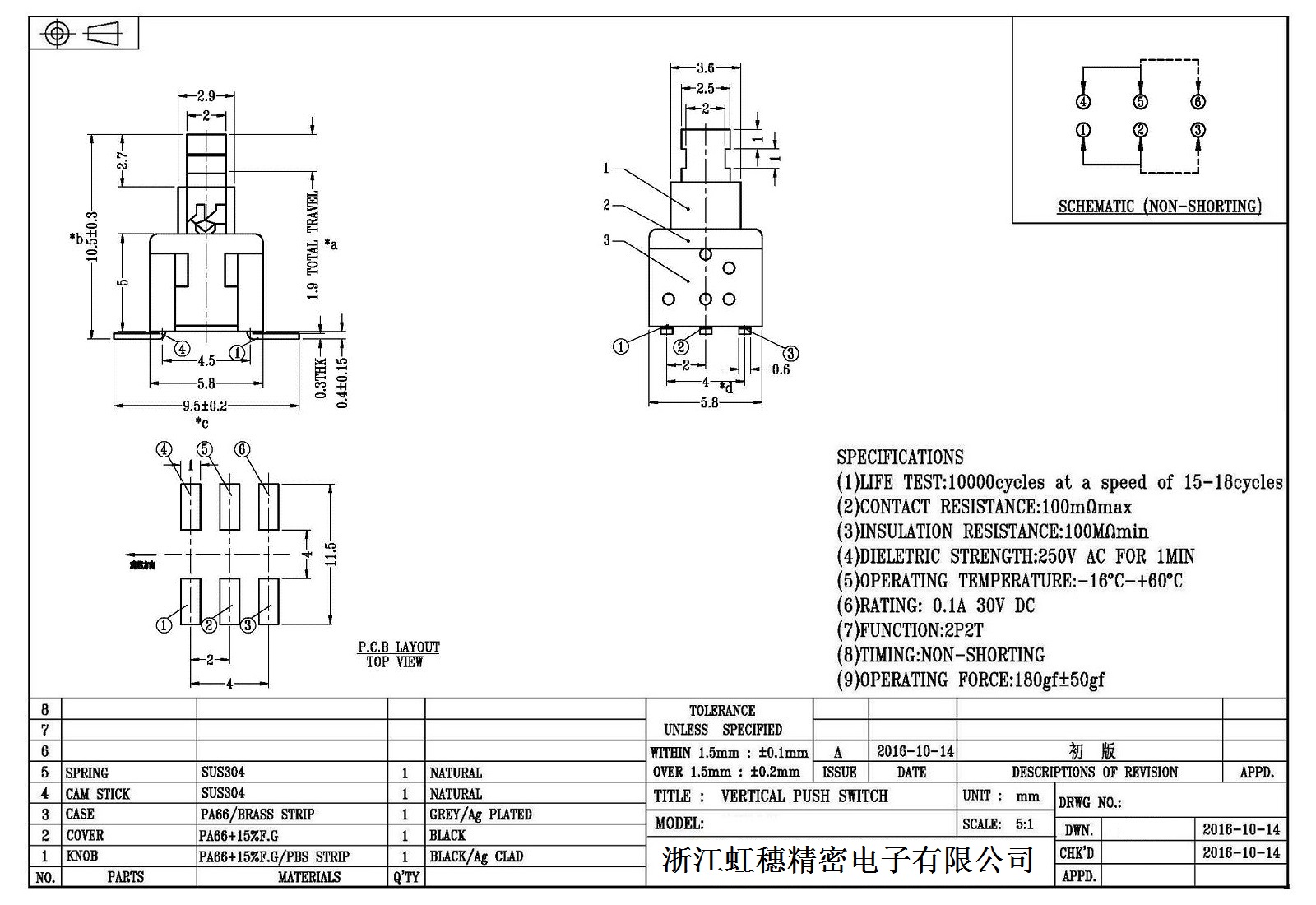自鎖開關技術參數: