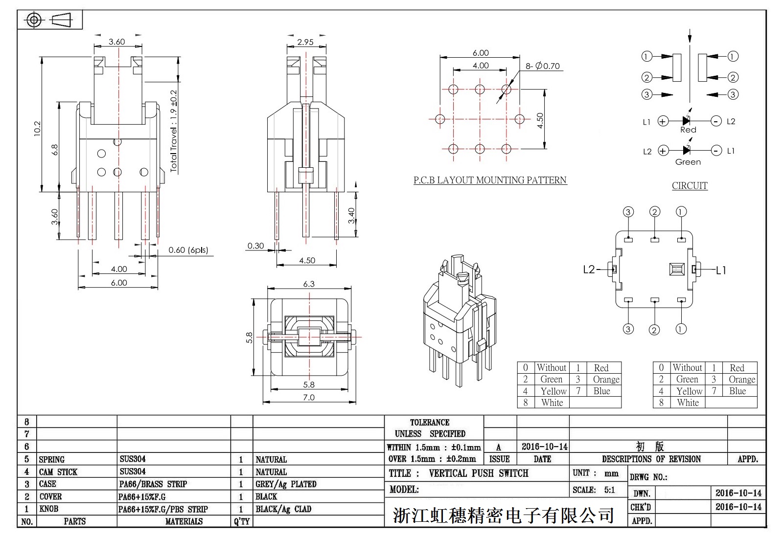 自鎖開關技術參數: