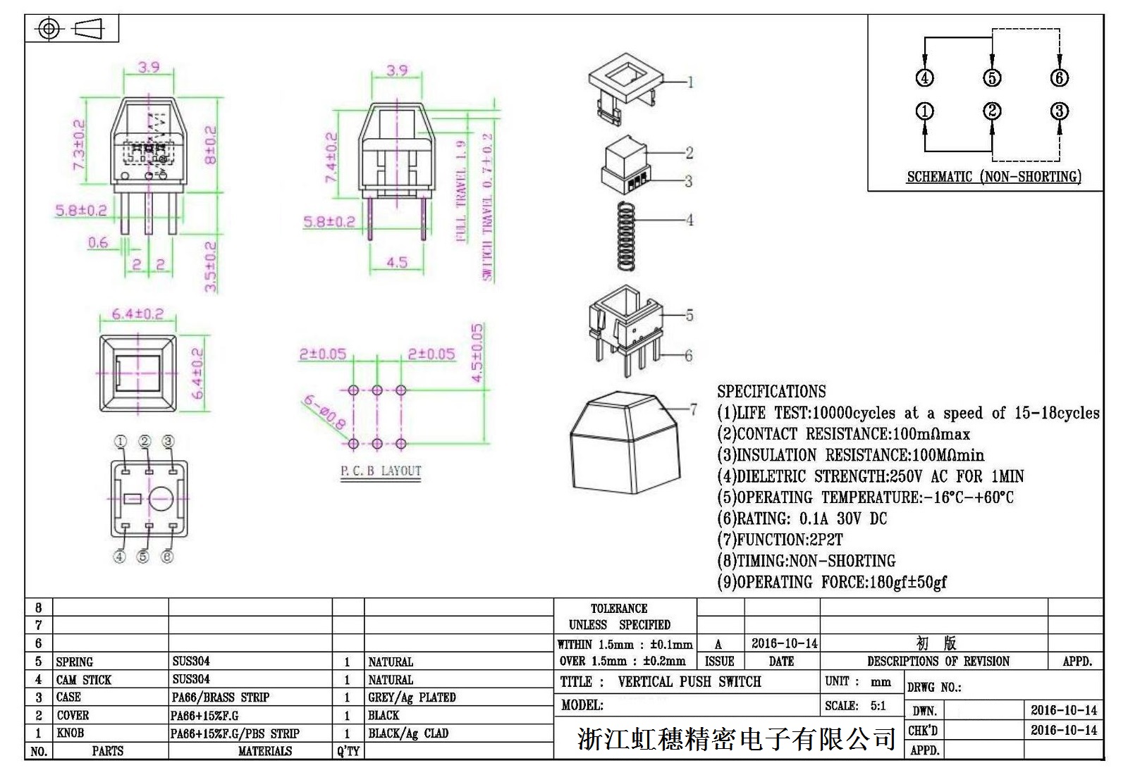3. 絕緣阻抗: DC 250V ≥100mΩ