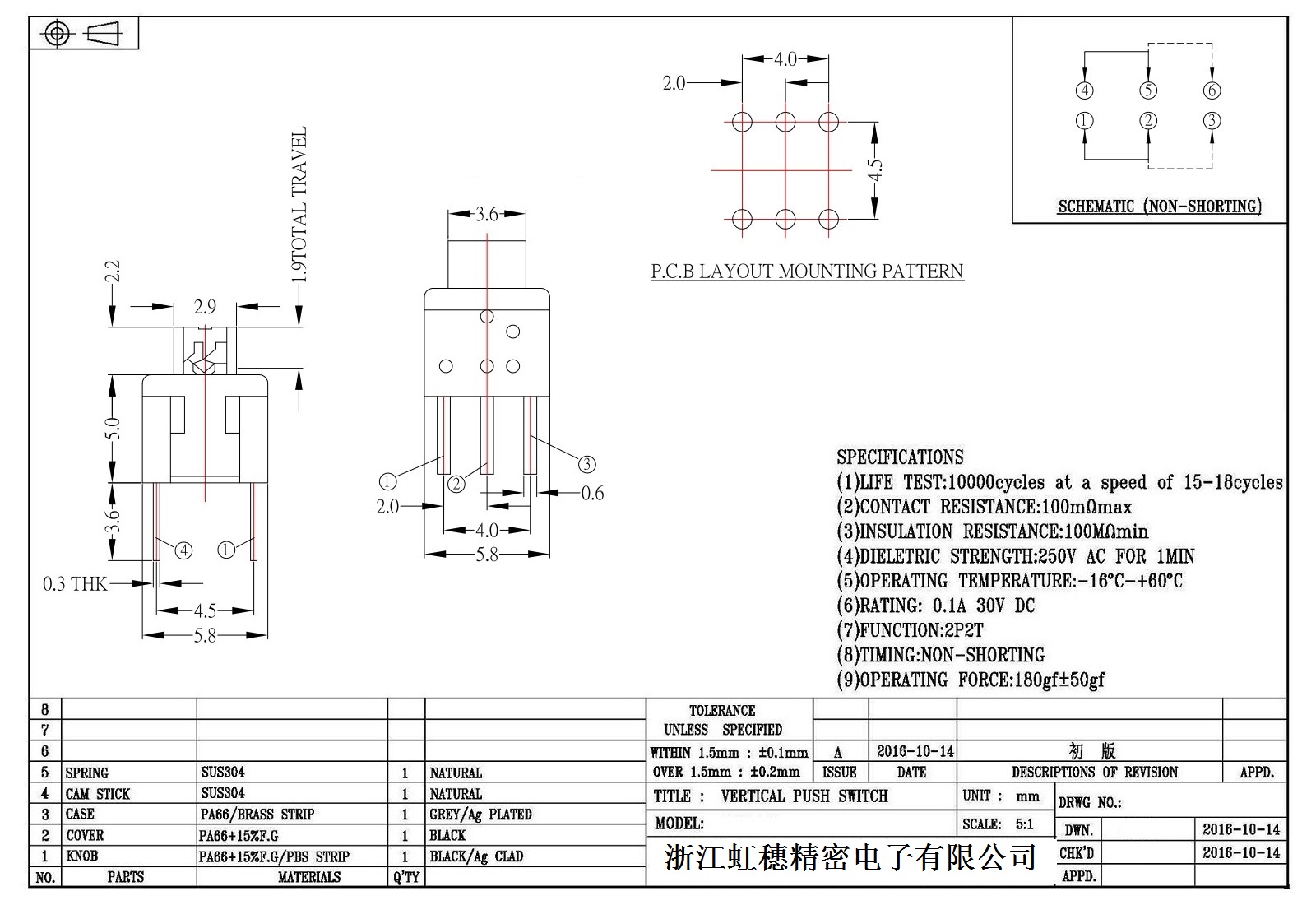 自鎖開(kāi)關(guān)技術(shù)參數(shù):