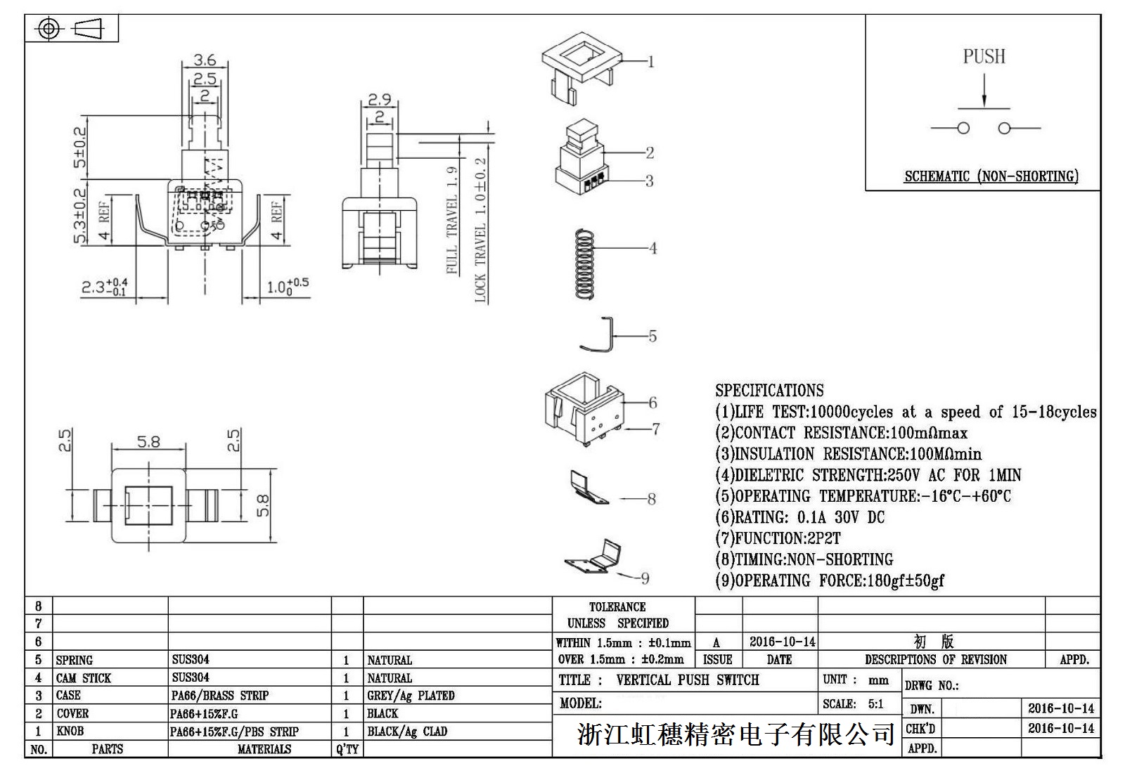 自鎖開關(guān)技術(shù)參數(shù):