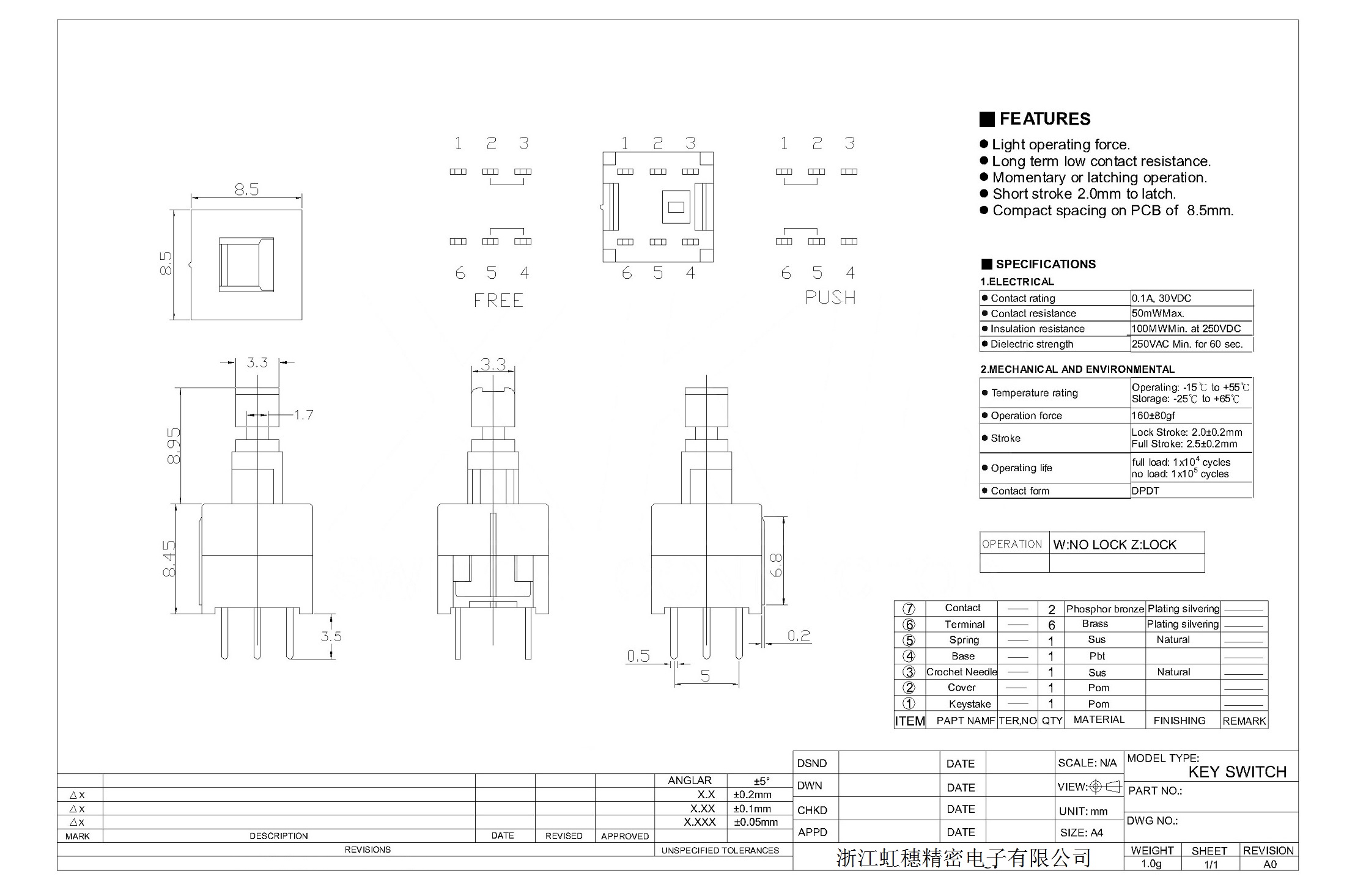 8. Operating force: 240gf ±80gf