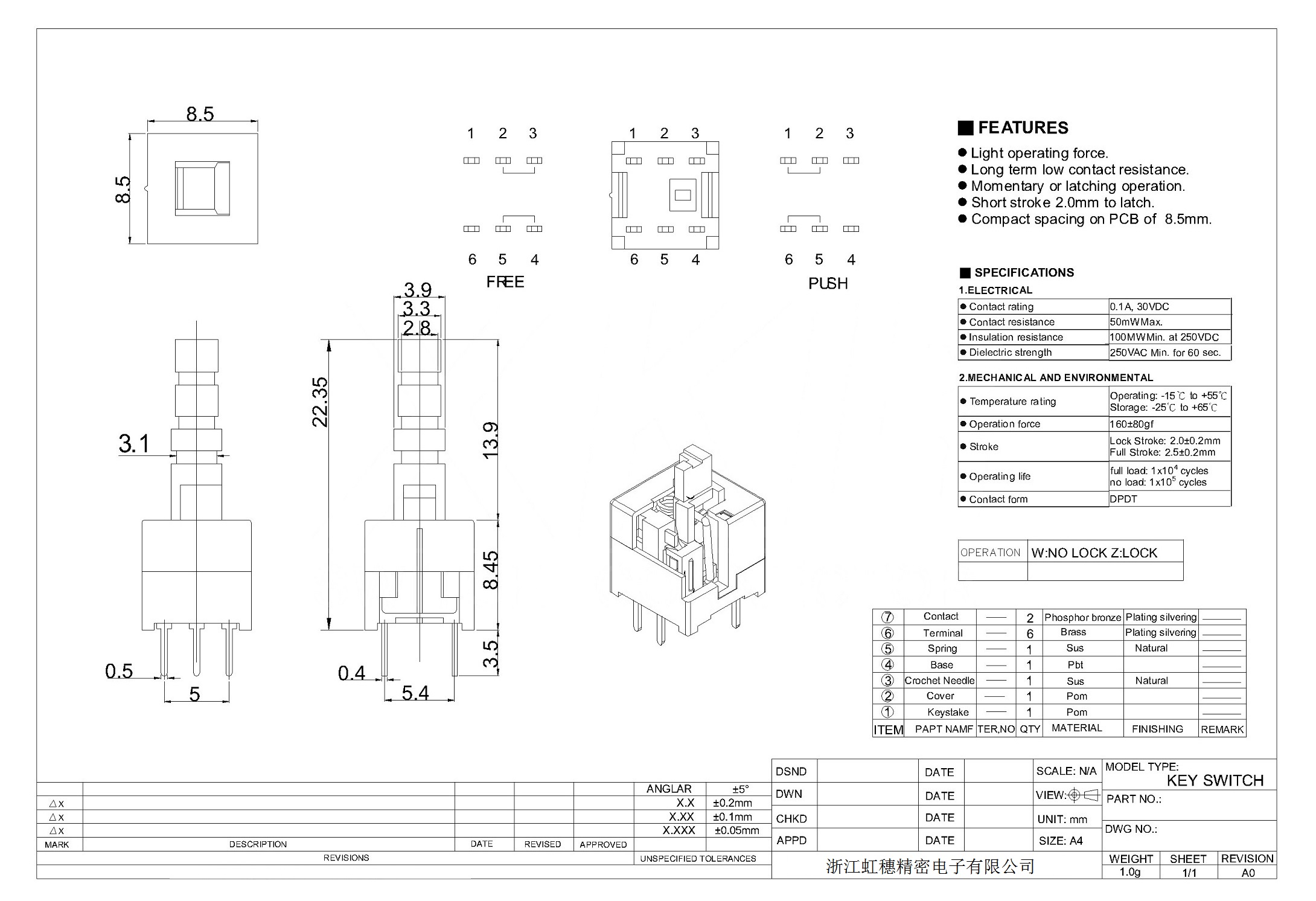 8. Operating force: 240gf ±80gf