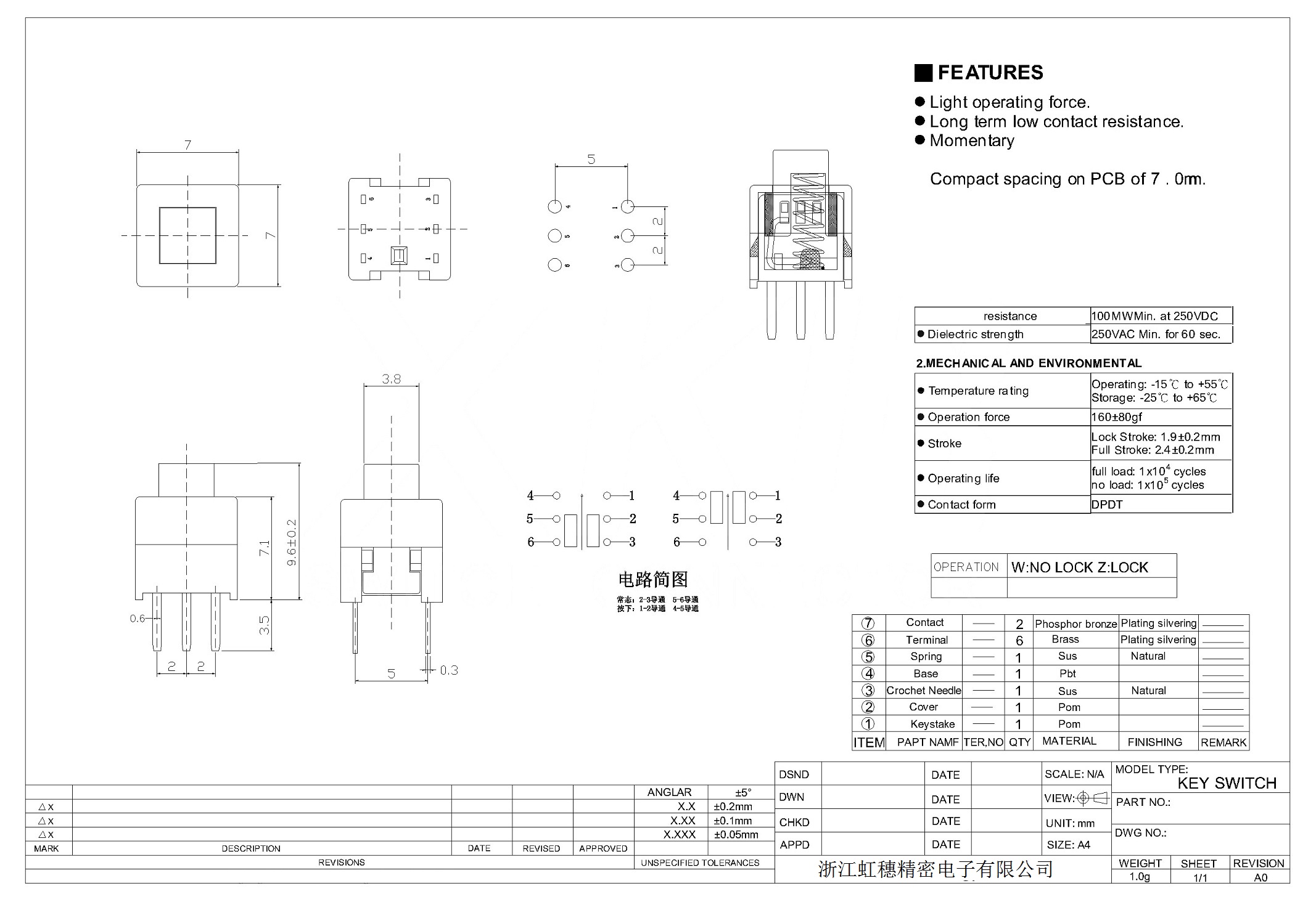 1. 額定負荷: DC 30V  50V  0.3A  0.5A
