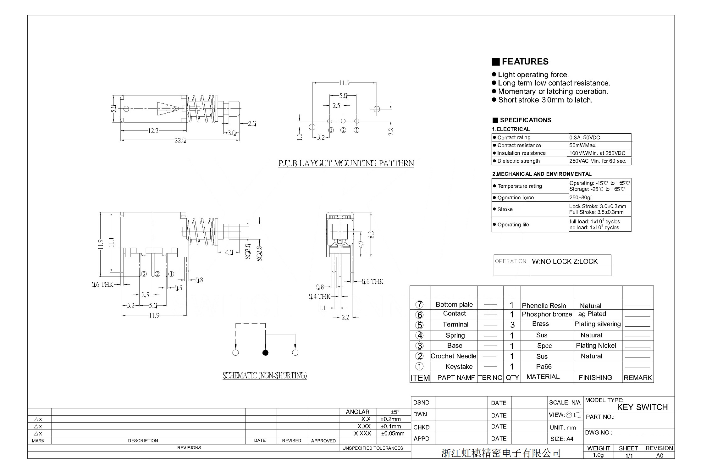 1. 額定負荷: DC 30V  50V  0.3A  0.5A