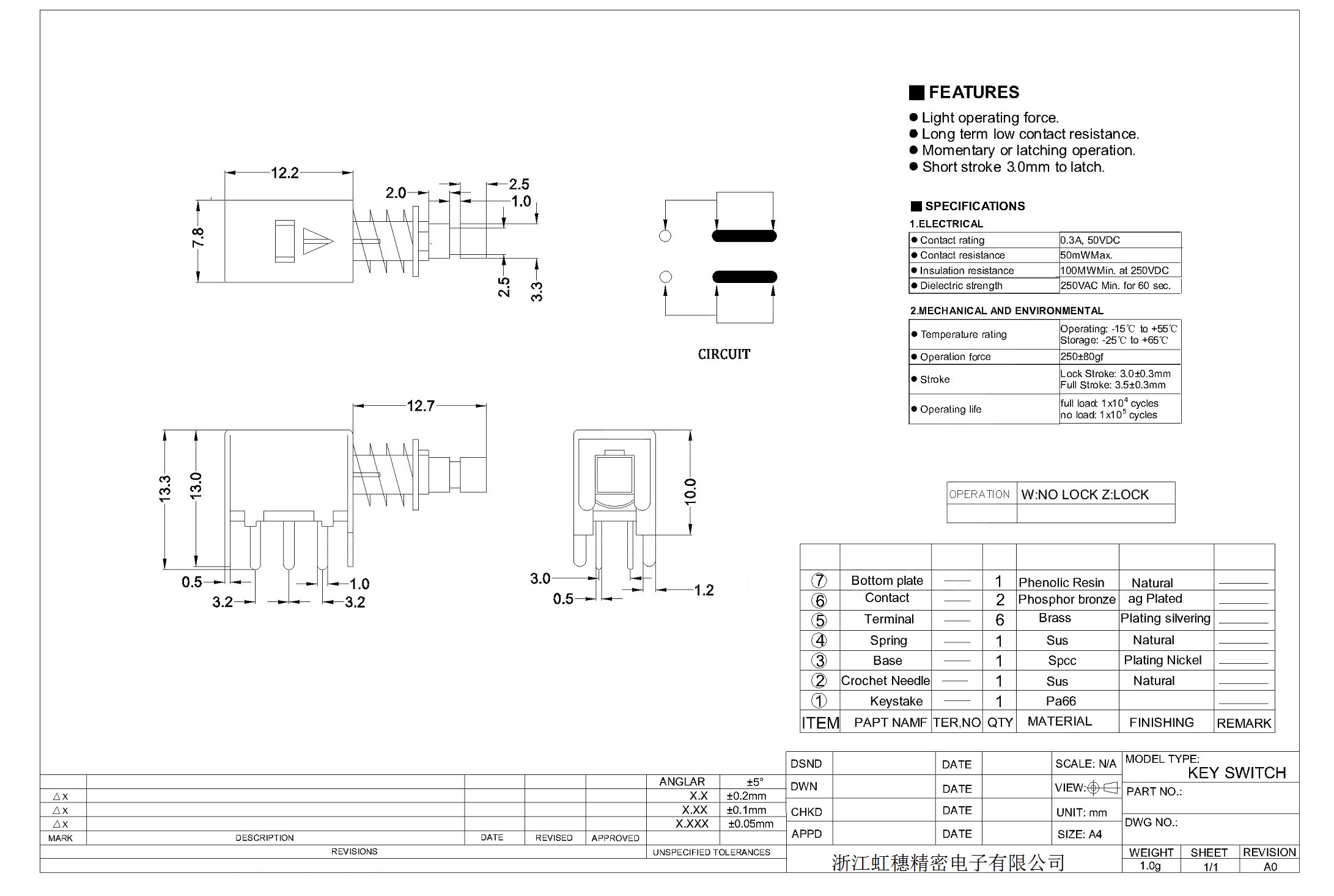 1. 額定負荷: DC 30V  50V  0.3A  0.5A