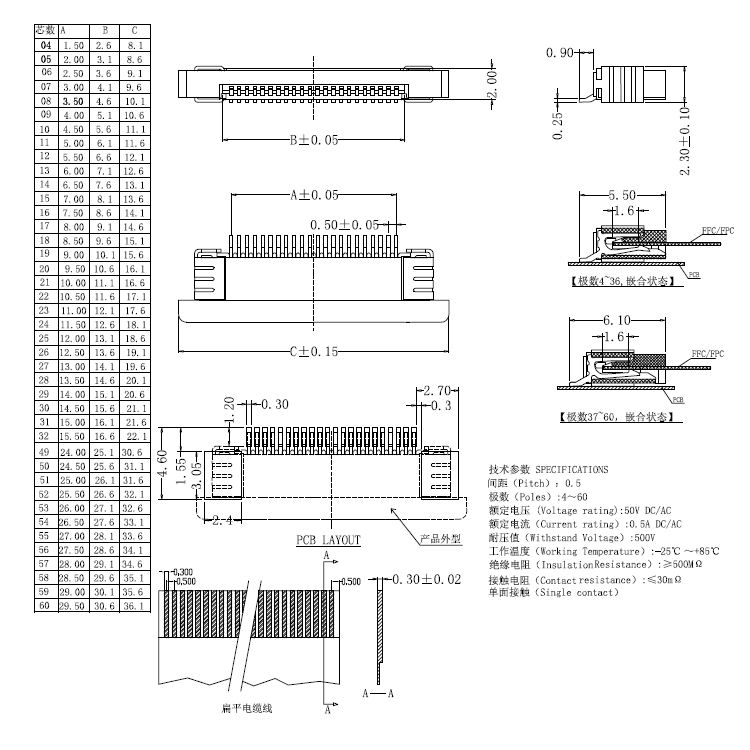 1.額定電壓、電流:50V DC/AC 2.接觸電阻:≤30mΩ