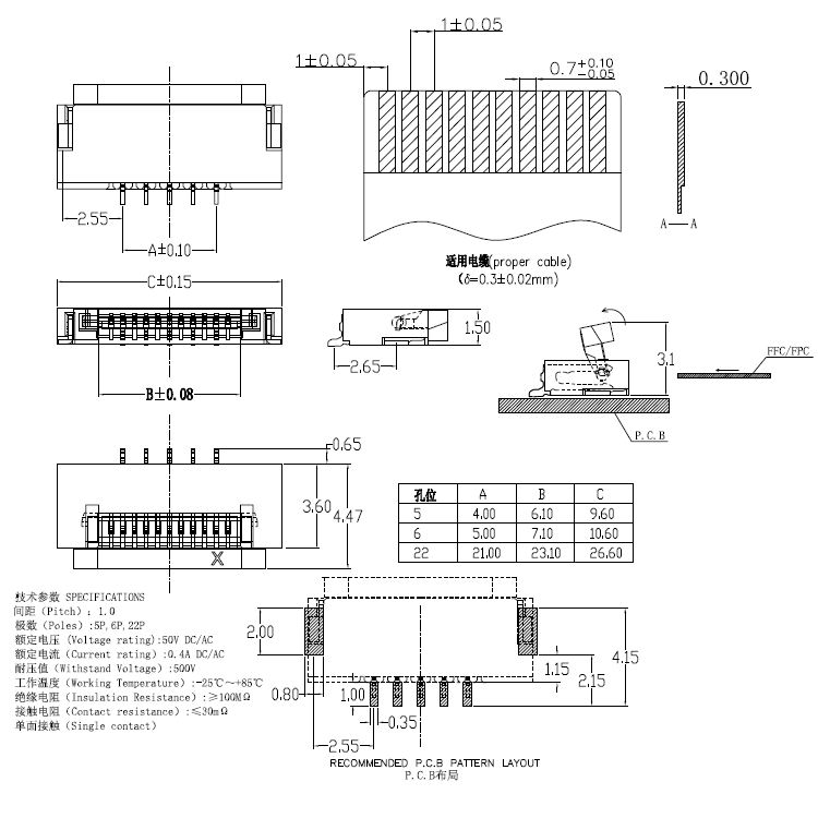 1.0pitch 帶鎖臥貼上翻下接H=1.5