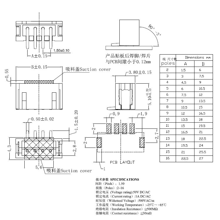 1.額定電壓、電流:50V DC/AC 2.接觸電阻:≤30mΩ