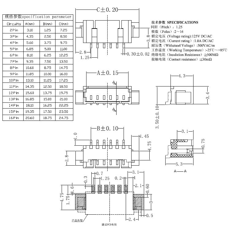 5.回流焊溫度:250℃ Max 6.使用溫度:-25℃~+85℃