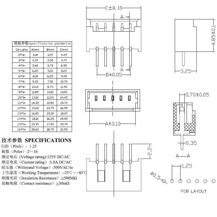 1.額定電壓、電流:50V DC/AC 2.接觸電阻:≤30mΩ