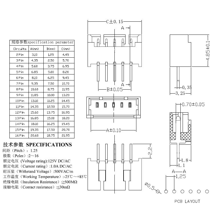 1.額定電壓、電流:50V DC/AC 2.接觸電阻:≤30mΩ