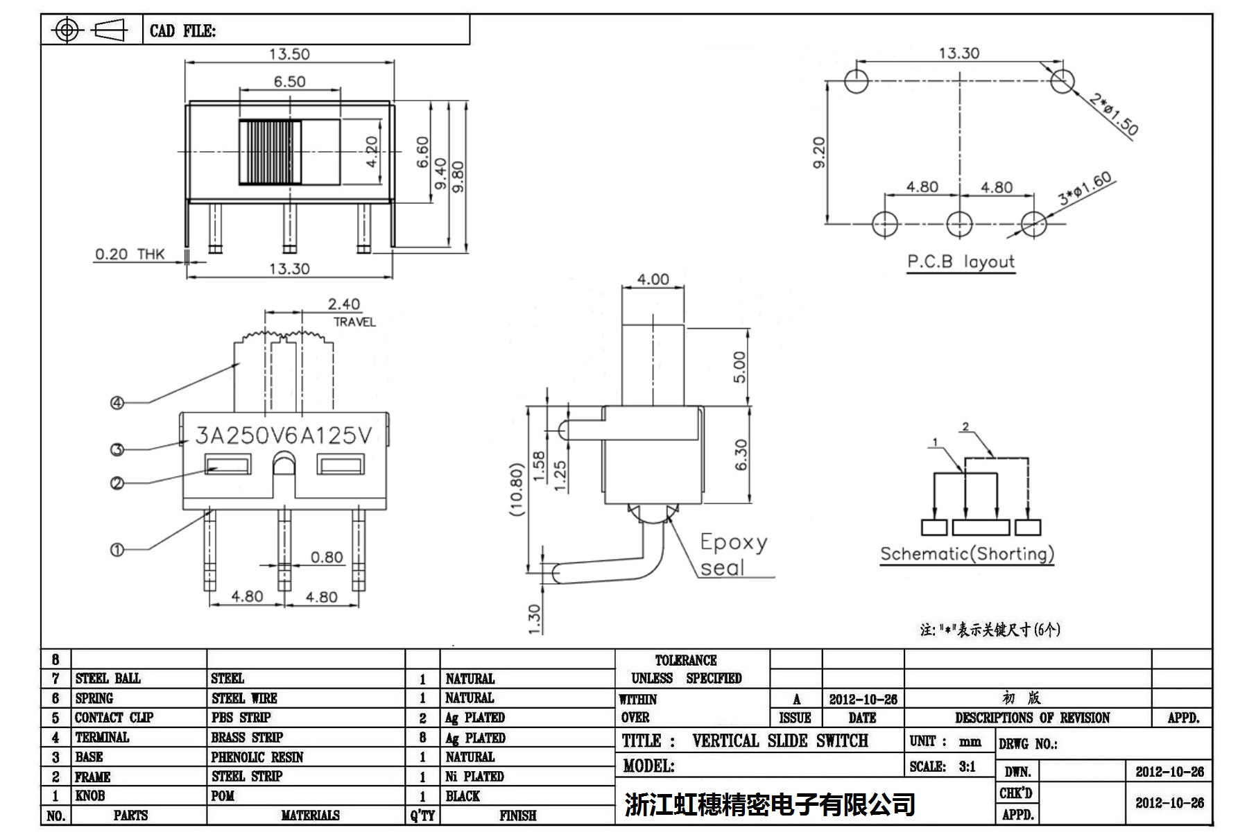 3. 絕緣阻抗: 100mΩ DC500V         4. 耐焊溫度: 250±5°5s