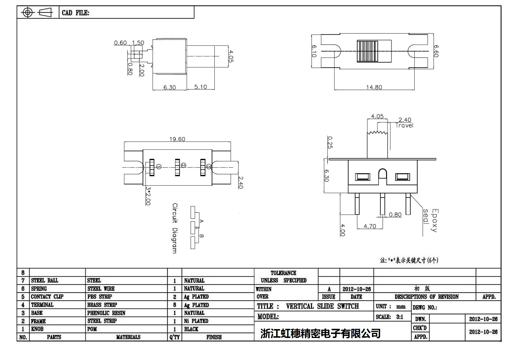 大電流撥動開關(guān)技術(shù)參數(shù):
