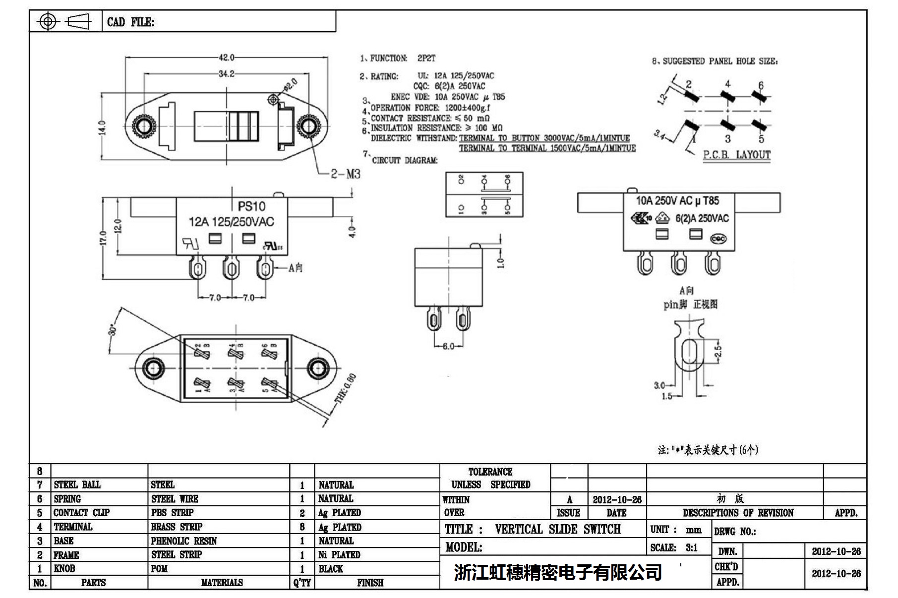 1、FUNCTION: 2P2T2、RATING: