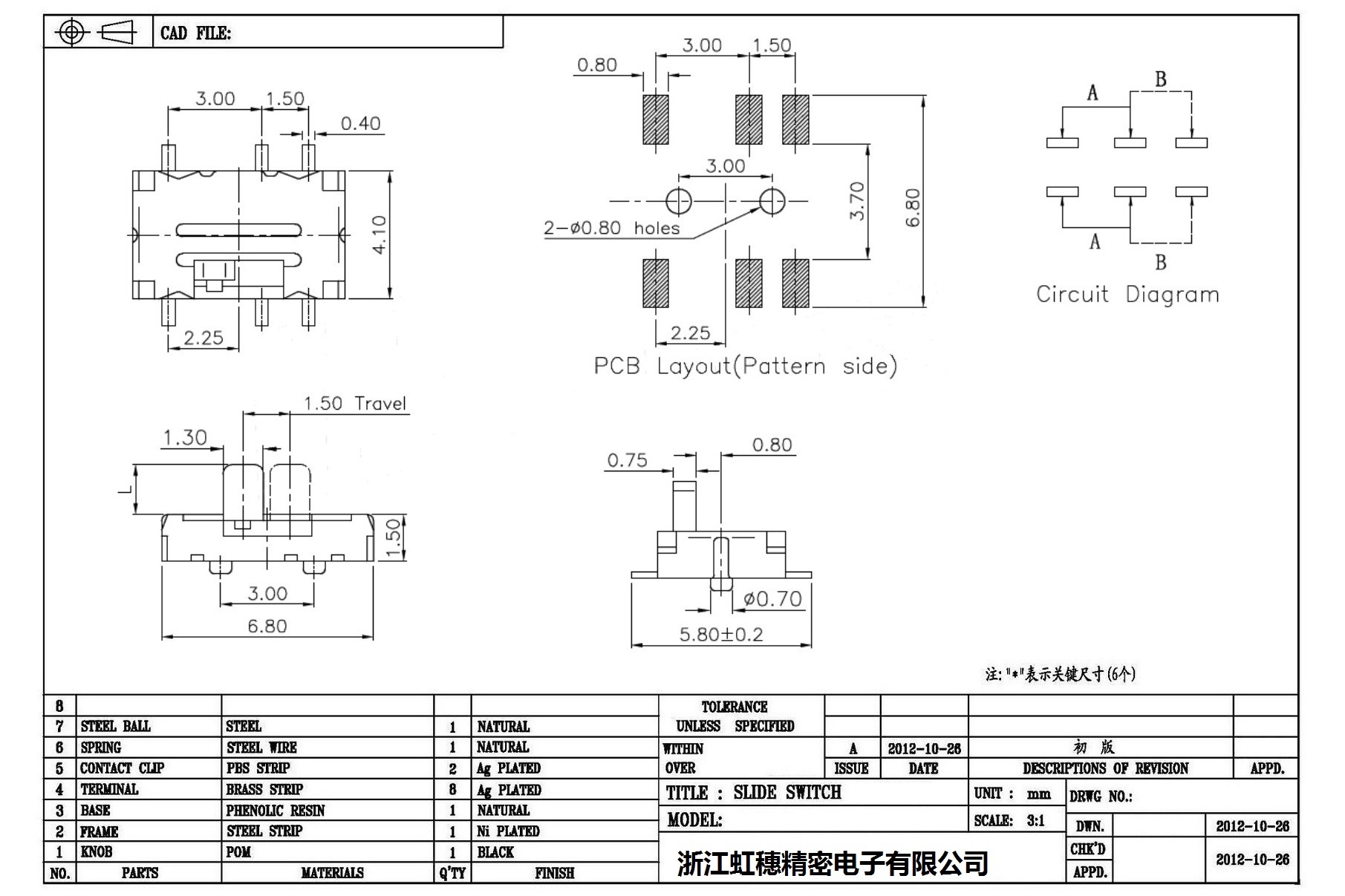 Technical parameters of mini slide switch: