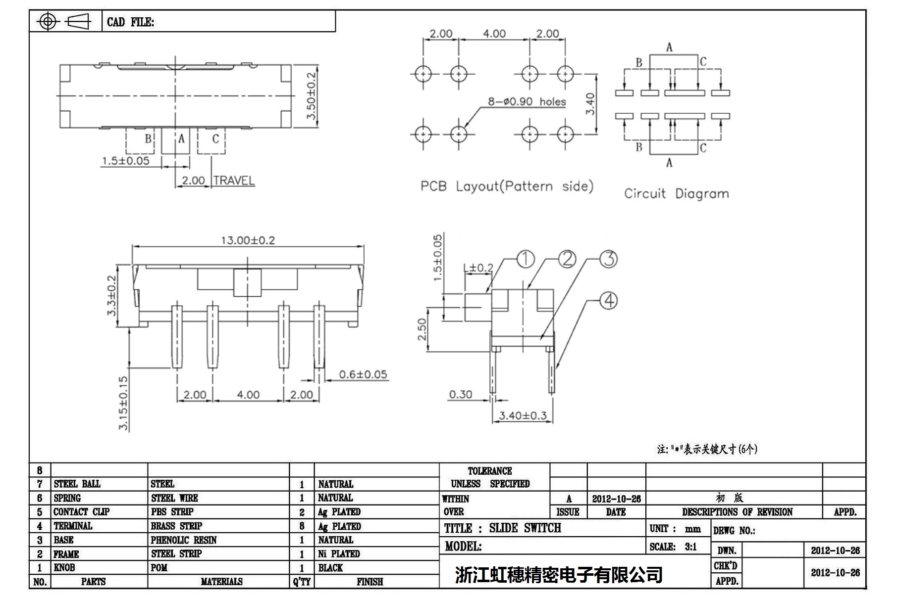 Minislide switch technical indicators / micro slide switch technical indicators
