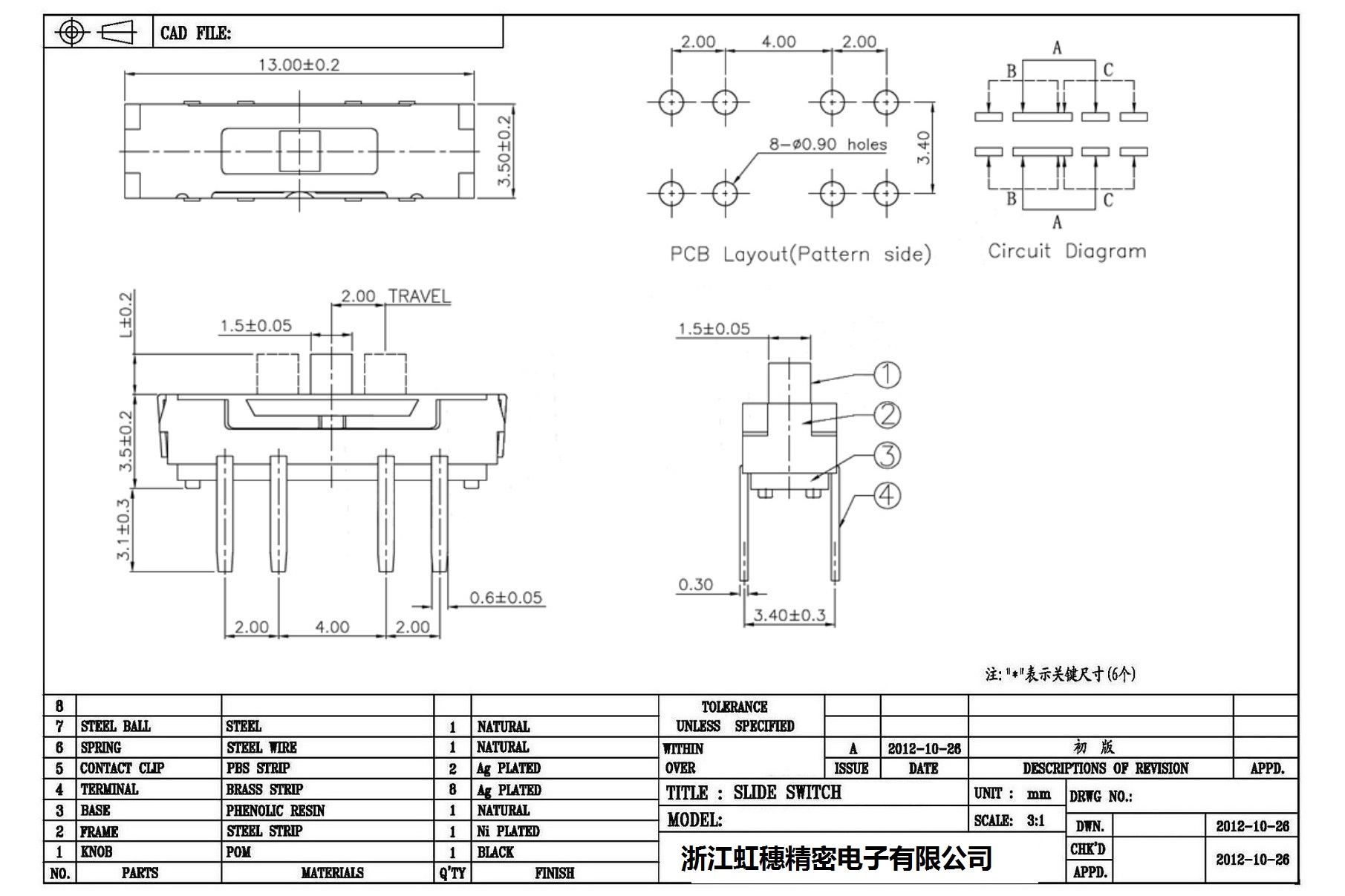 迷你型撥動(dòng)開關(guān)技術(shù)指標(biāo)