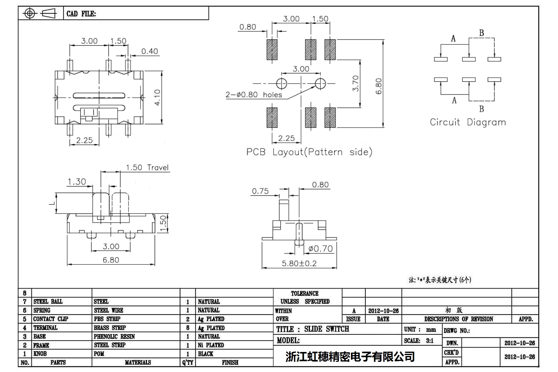 迷你型撥動開關(guān)技術(shù)指標