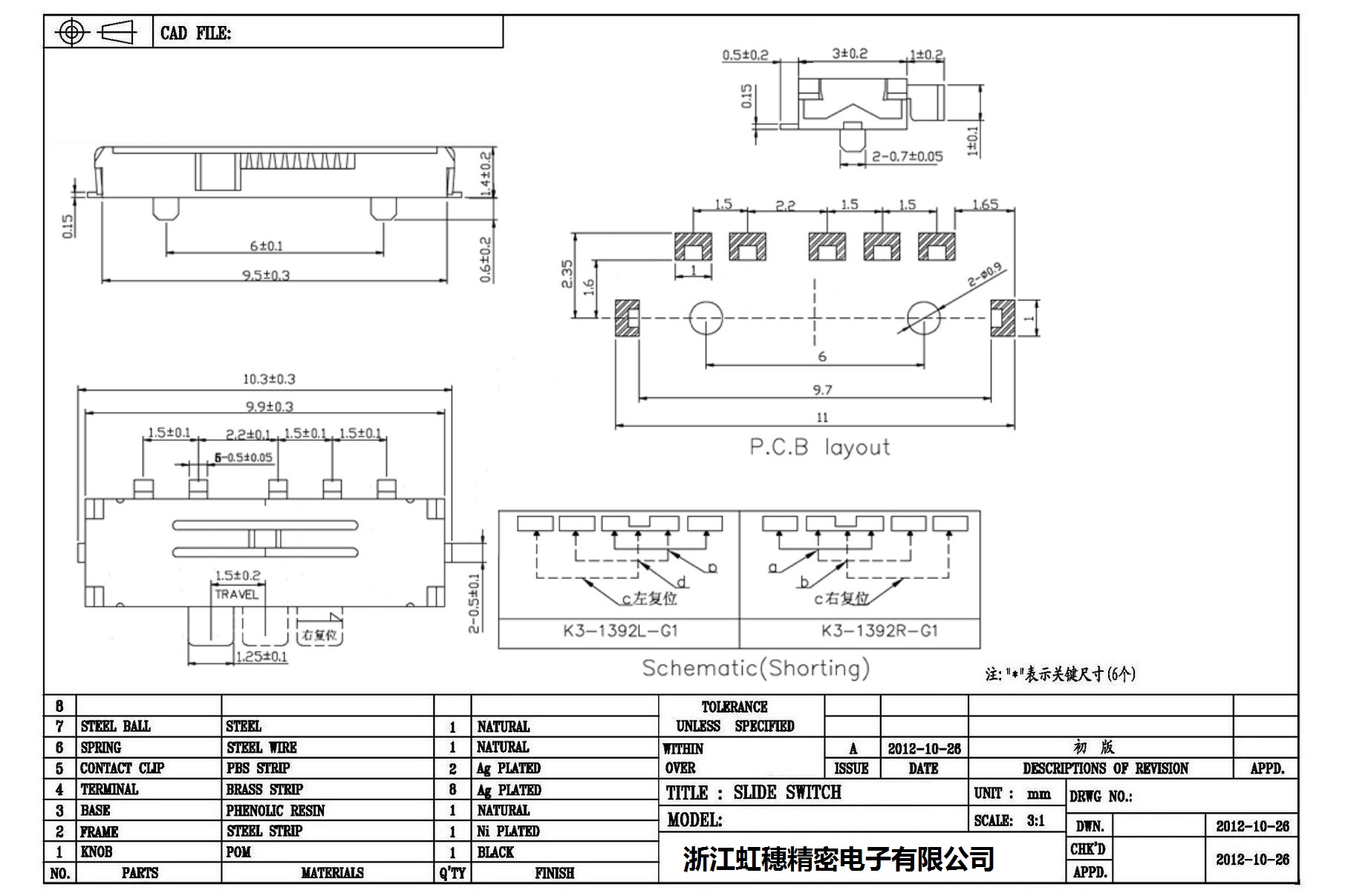 迷你型撥動開關(guān)技術(shù)指標(biāo)