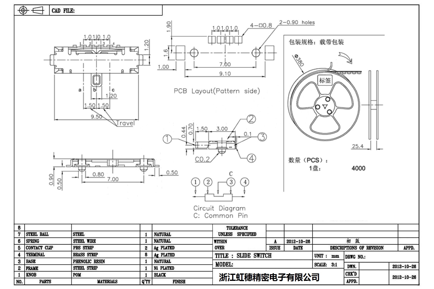 Minislide switch technical indicators / micro slide switch technical indicators