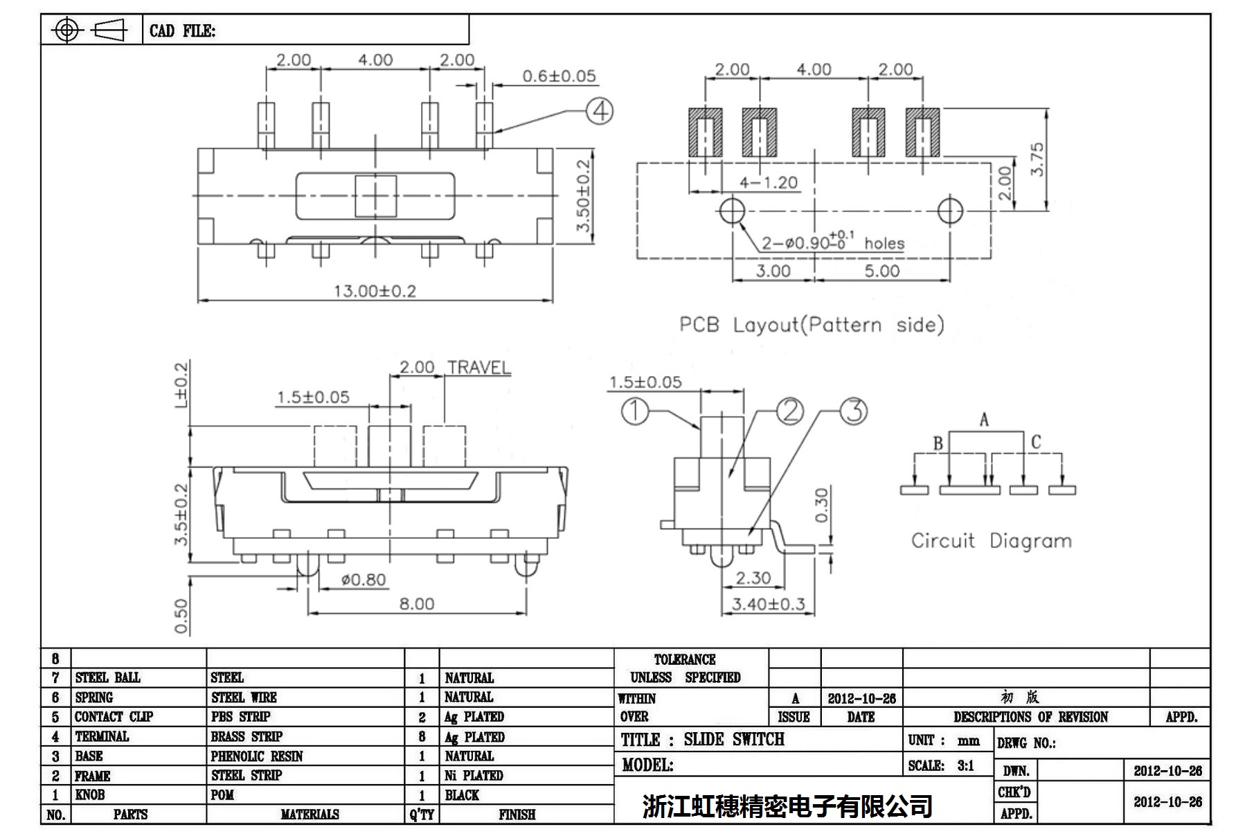 Minislide switch technical indicators / micro slide switch technical indicators
