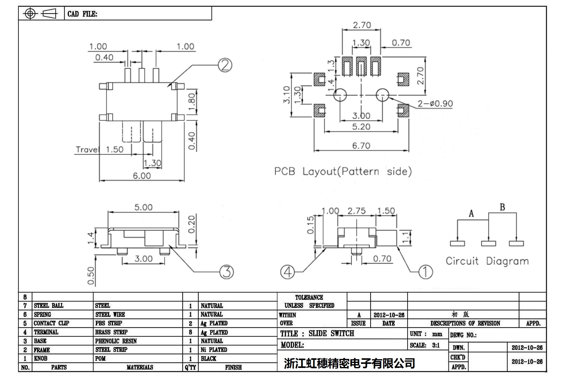 迷你型撥動(dòng)開關(guān)技術(shù)指標(biāo)