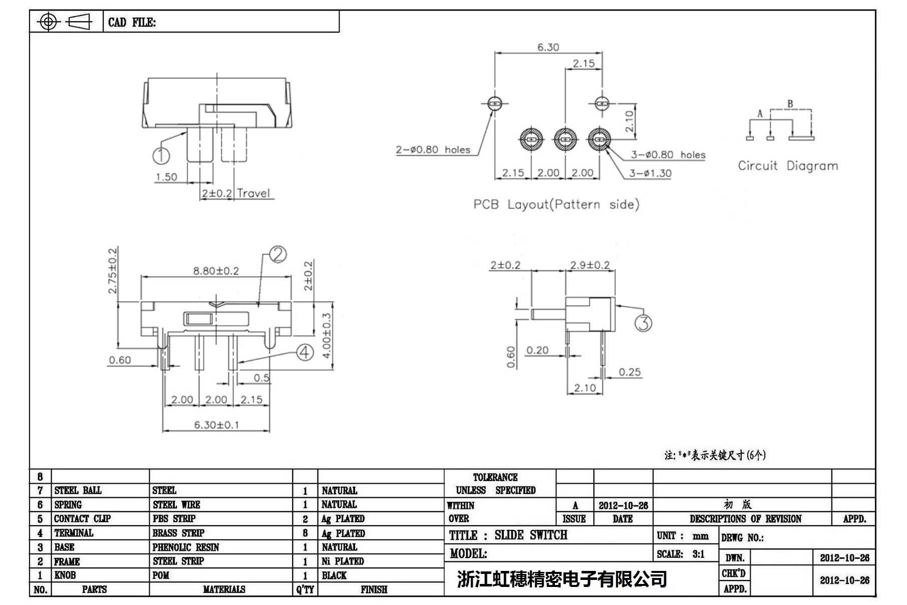 迷你型撥動開關(guān)技術(shù)指標(biāo)