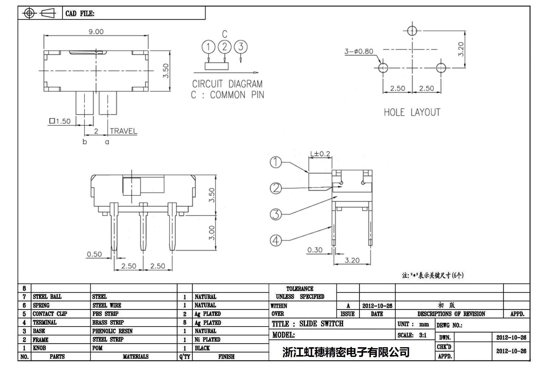 Minislide switch technical indicators / micro slide switch technical indicators