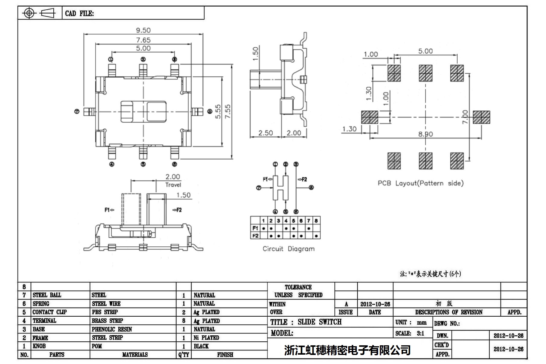迷你型撥動(dòng)開關(guān)技術(shù)指標(biāo)