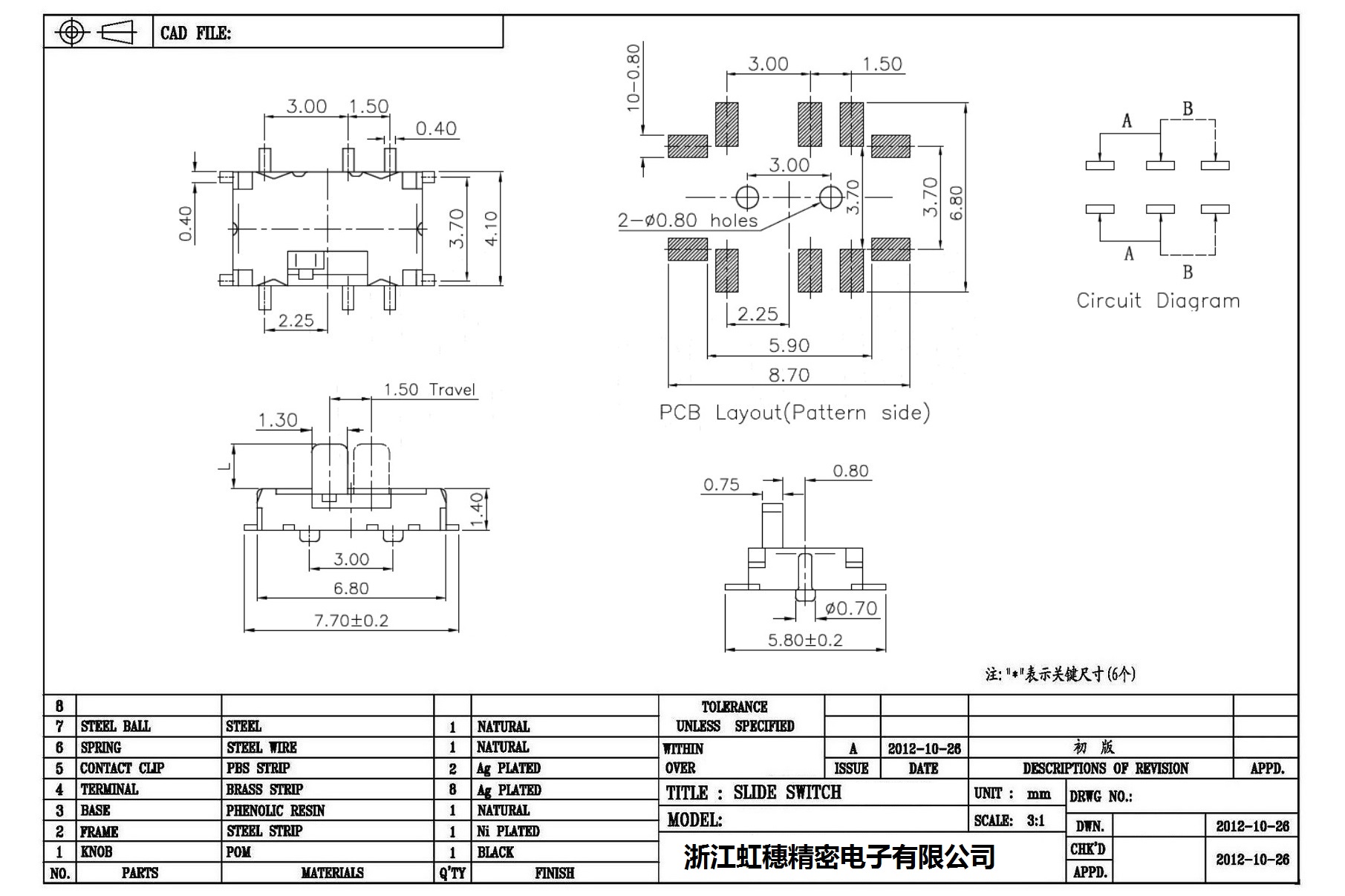 Minislide switch technical indicators / micro slide switch technical indicators