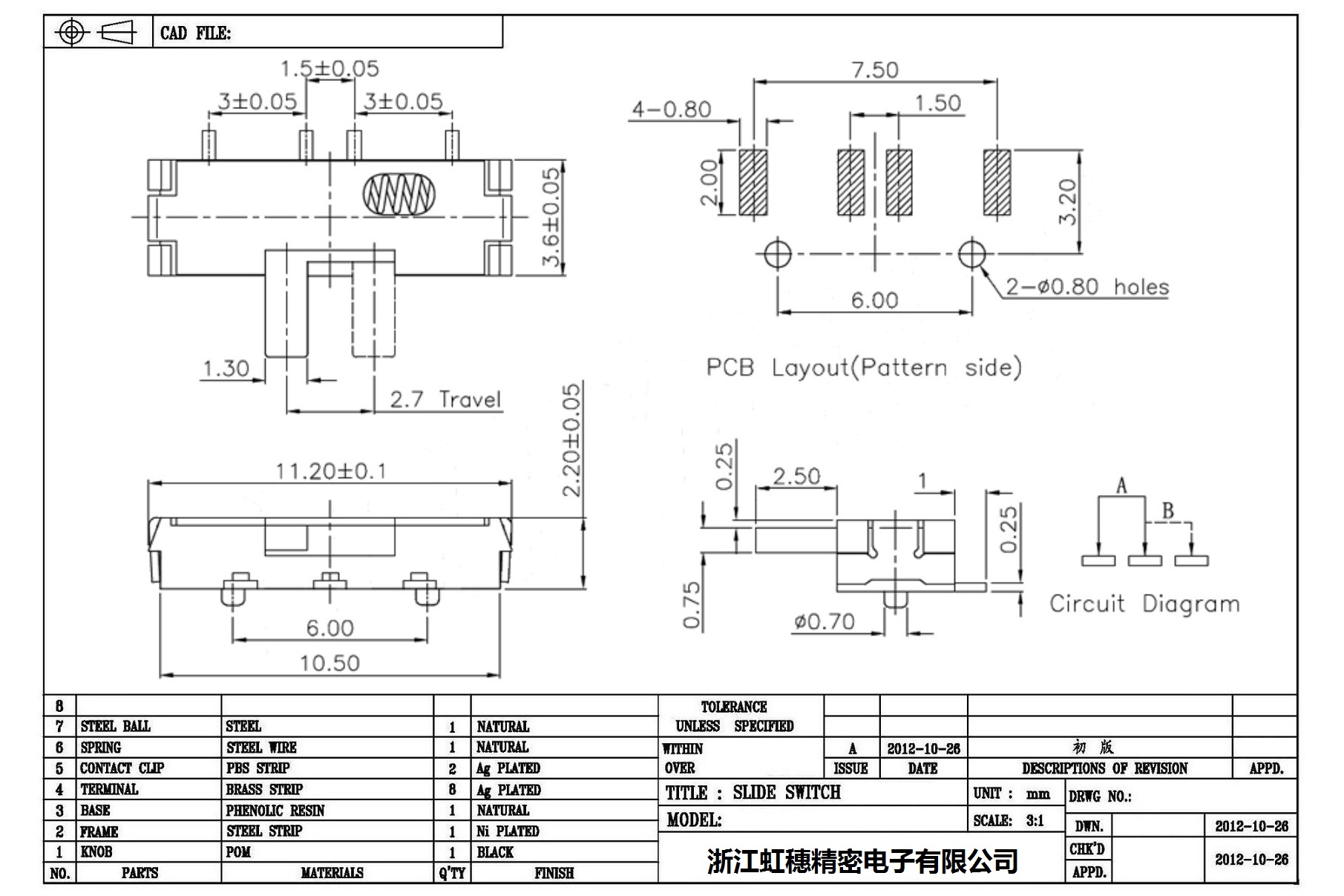 迷你型撥動開關(guān)技術(shù)指標