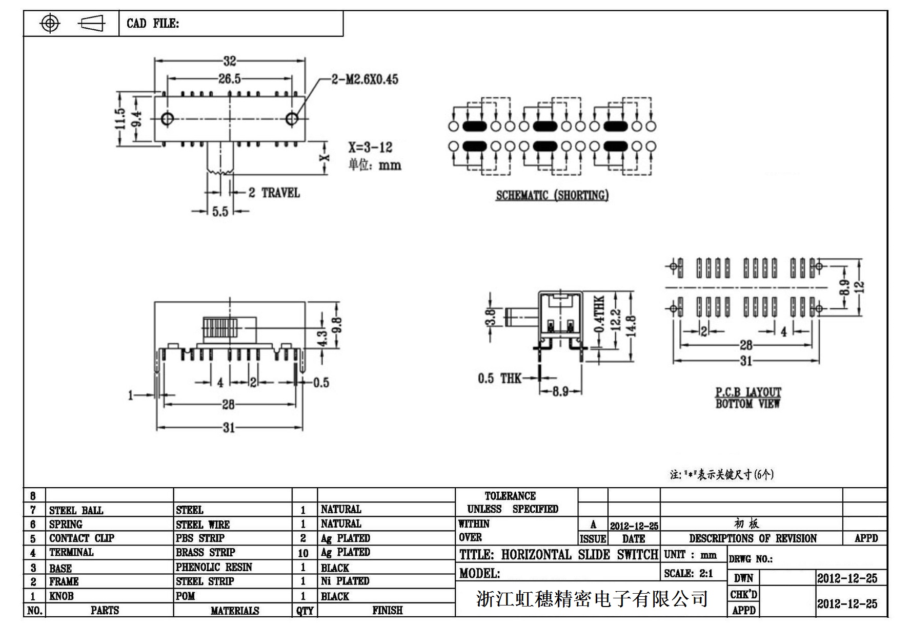 Horizontal toggle switch sidedial/horizontal slide switch technical indicators