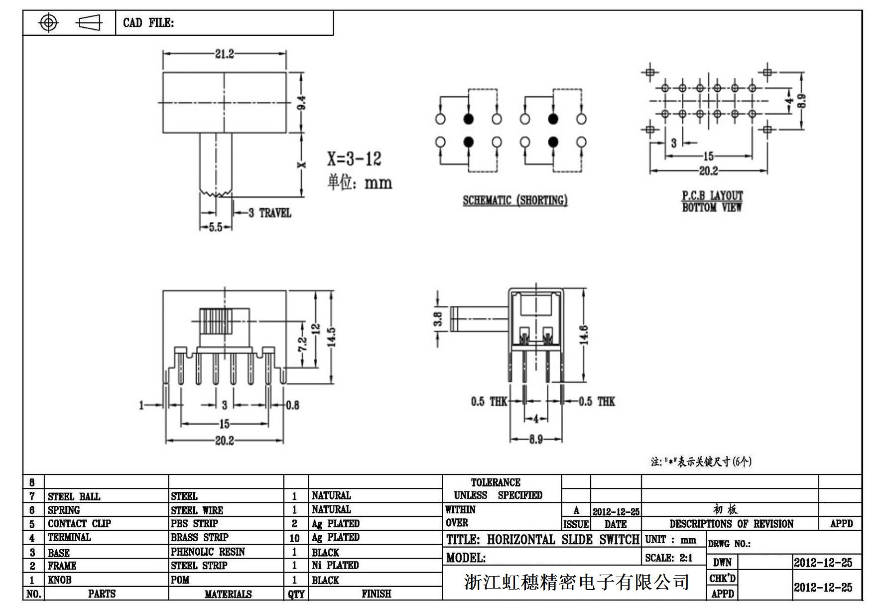 Horizontal toggle switch sidedial/horizontal slide switch technical indicators