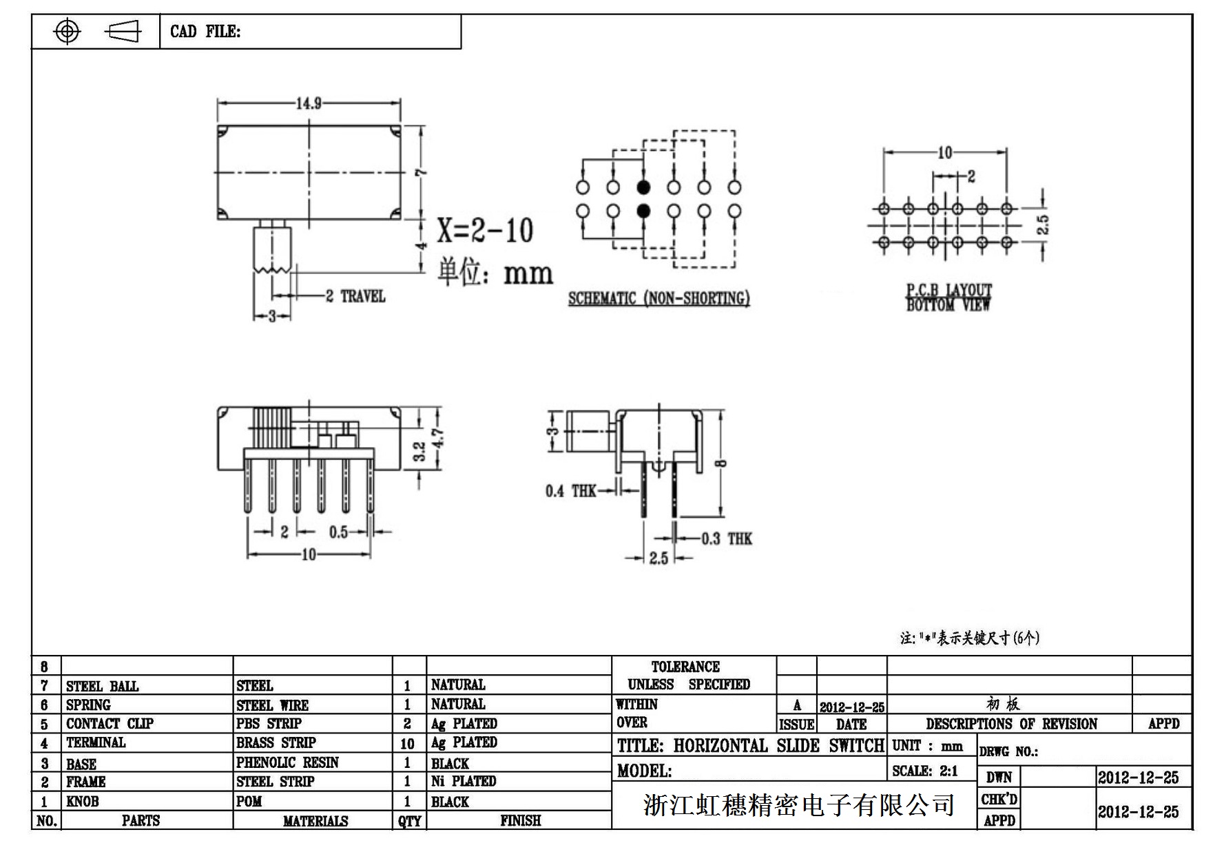 Horizontal toggle switch sidedial/horizontal slide switch technical indicators