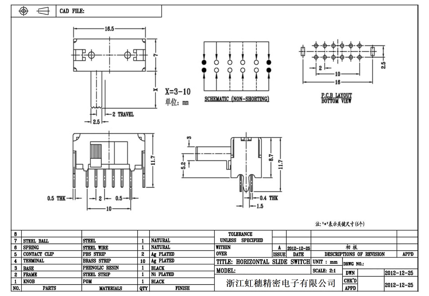 Horizontal toggle switch sidedial/horizontal slide switch technical indicators