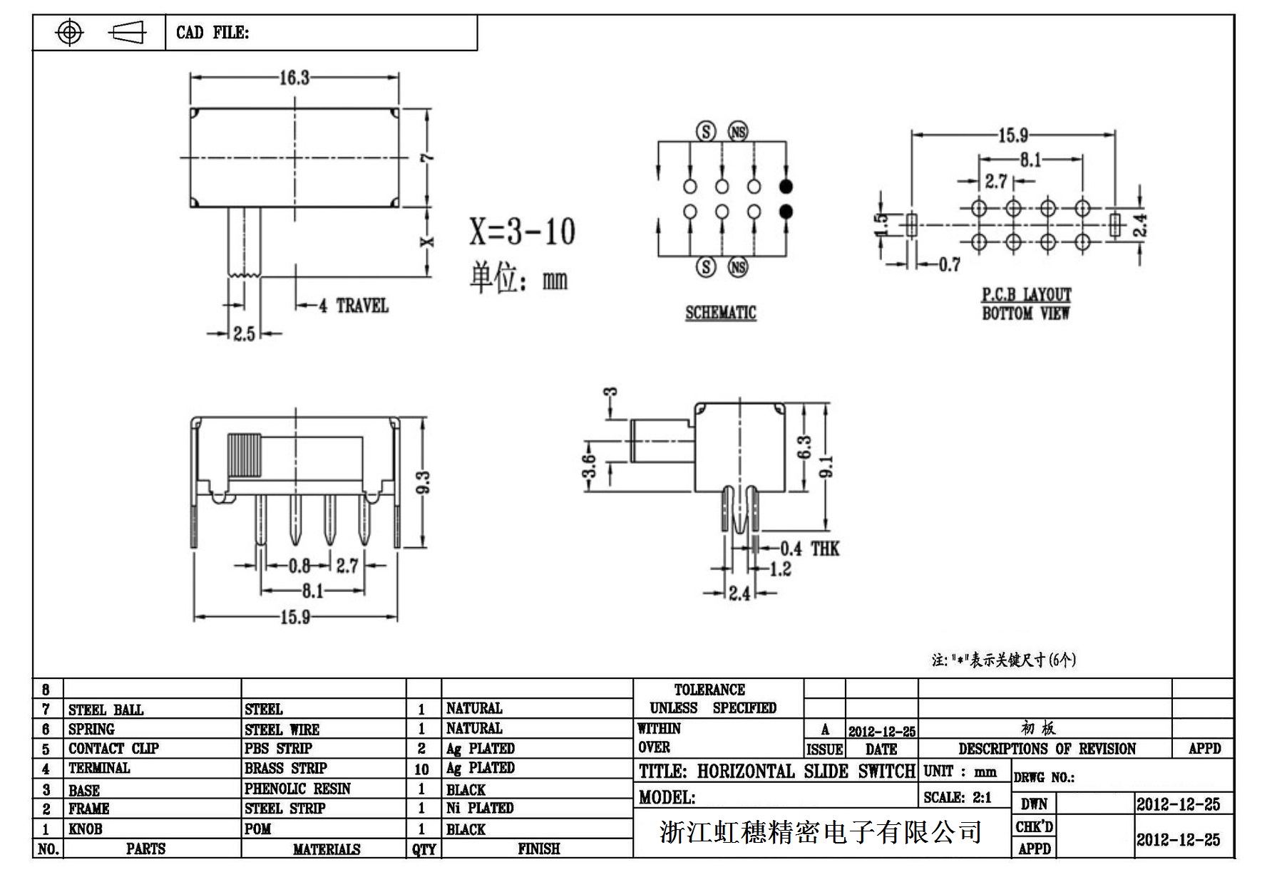Horizontal toggle switch sidedial/horizontal slide switch technical indicators