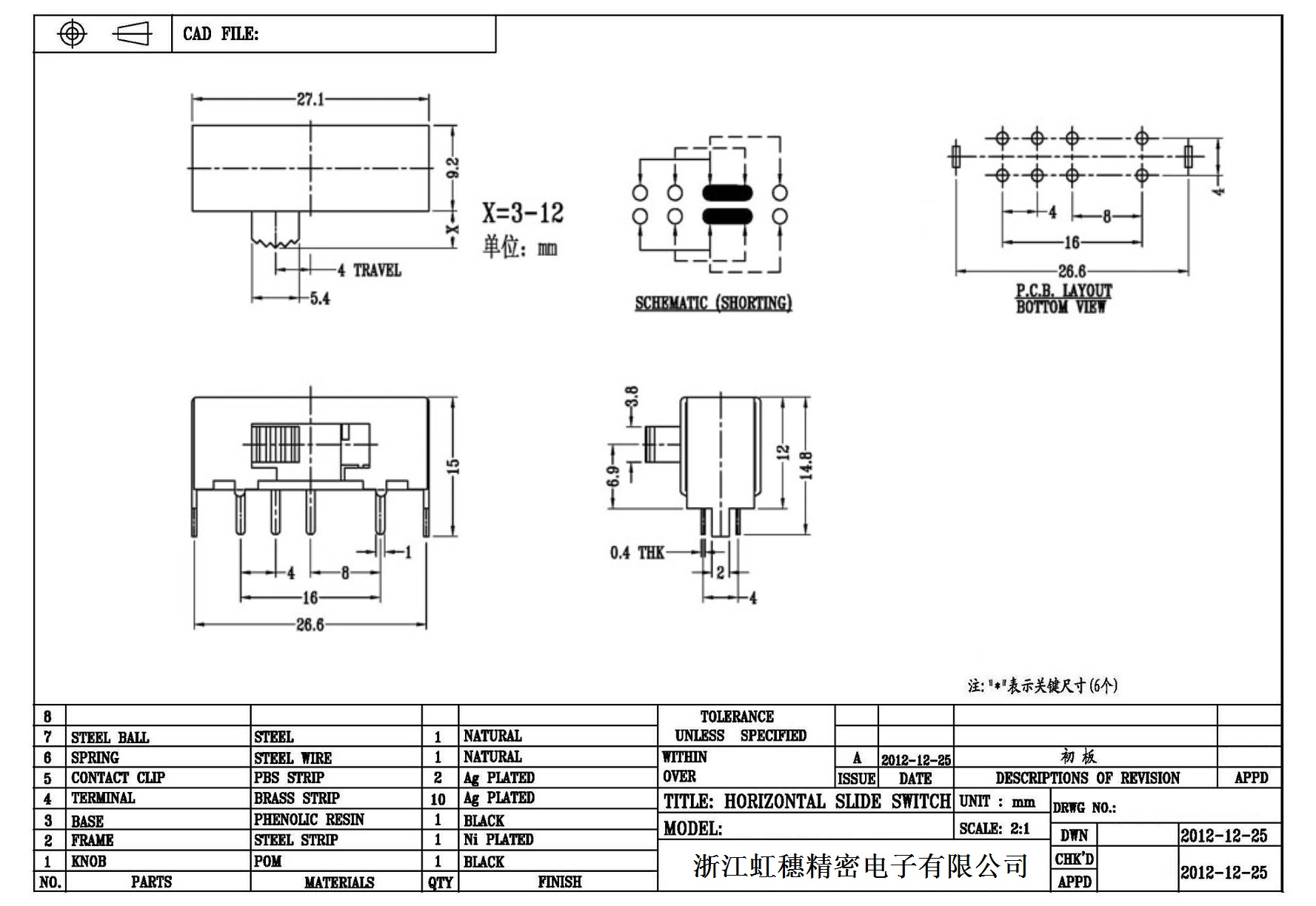 Horizontal toggle switch sidedial/horizontal slide switch technical indicators