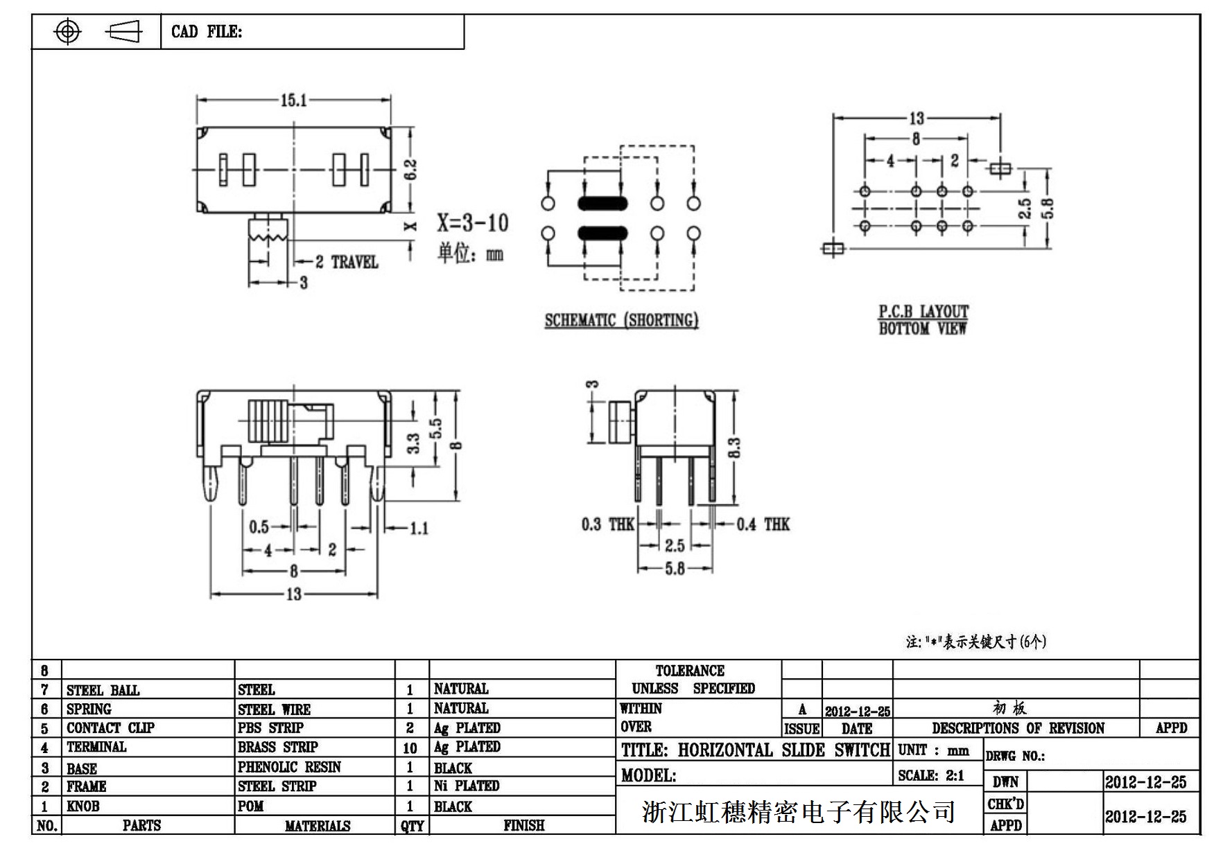 Horizontal toggle switch sidedial/horizontal slide switch technical indicators