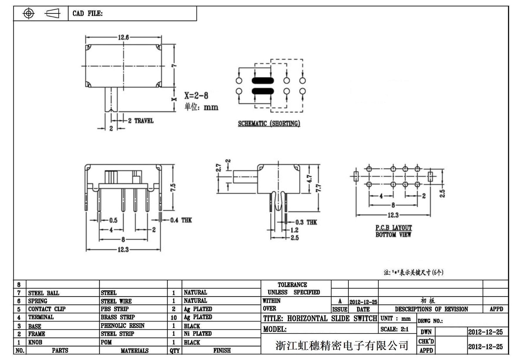 Horizontal toggle switch sidedial/horizontal slide switch technical indicators
