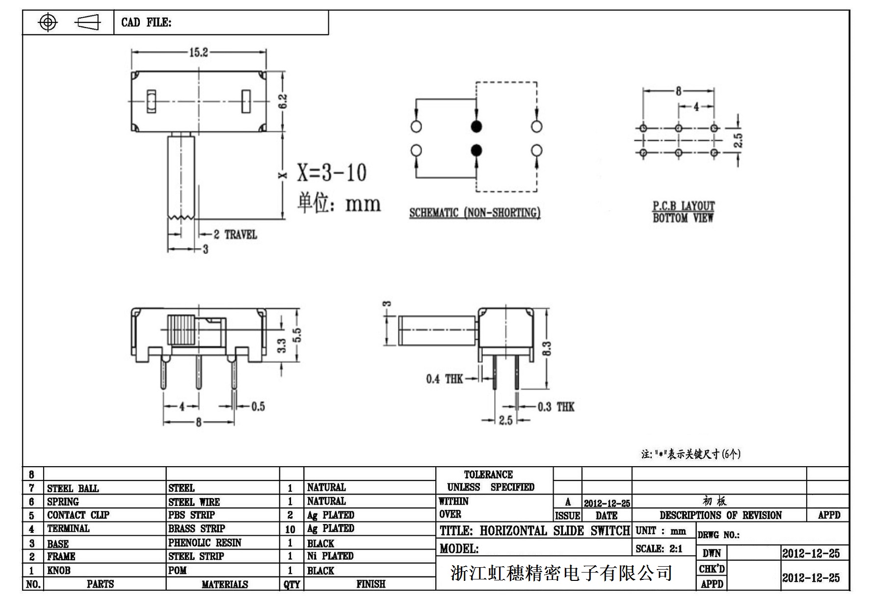 Horizontal toggle switch sidedial/horizontal slide switch technical indicators