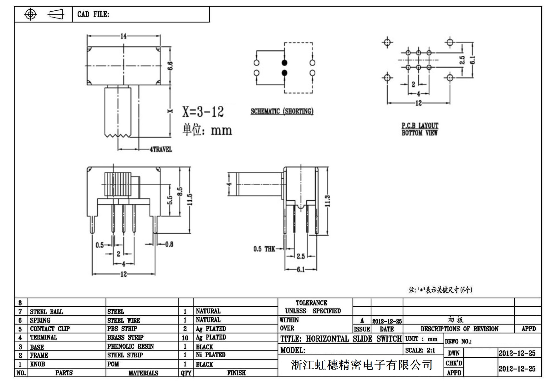 Horizontal toggle switch sidedial/horizontal slide switch technical indicators