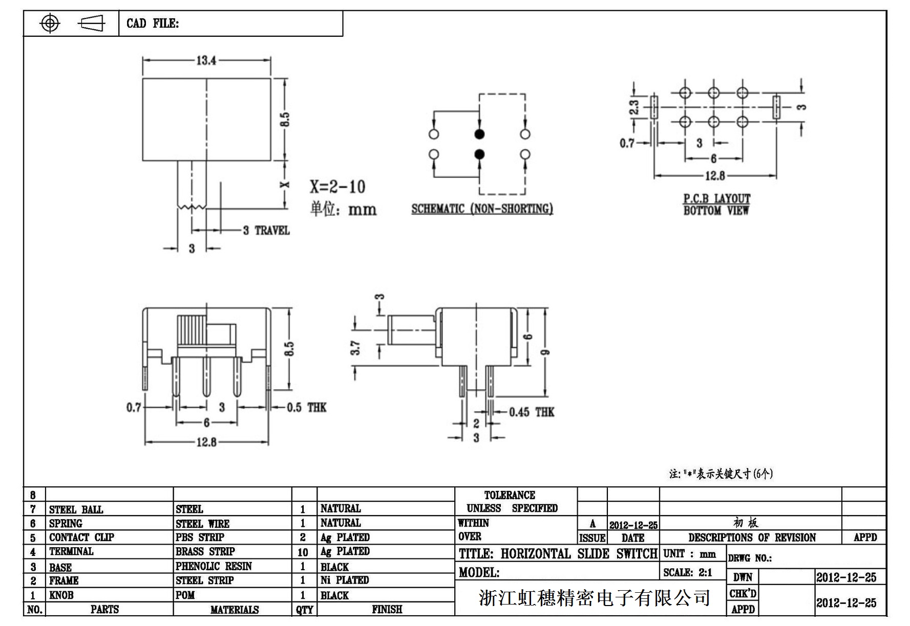 Horizontal toggle switch sidedial/horizontal slide switch technical indicators