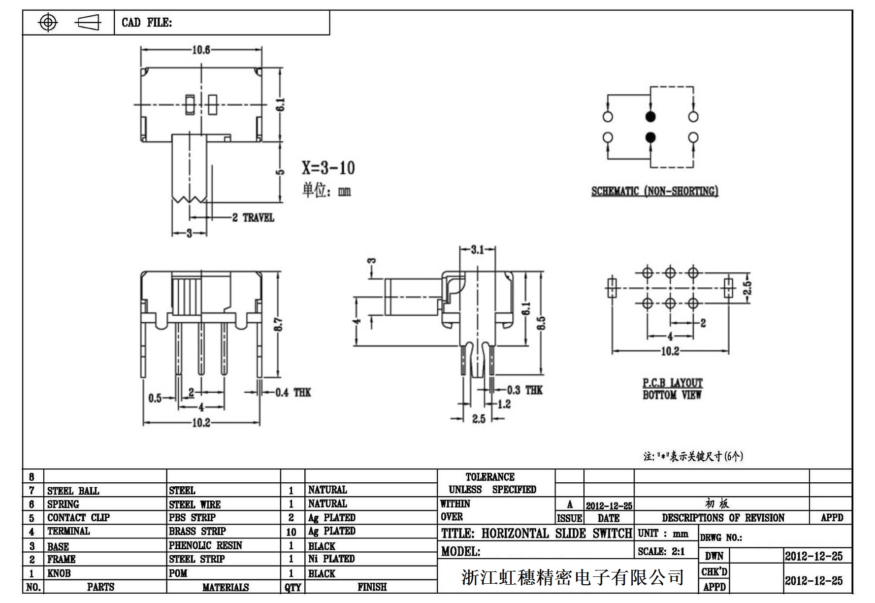 Horizontal toggle switch sidedial/horizontal slide switch technical indicators